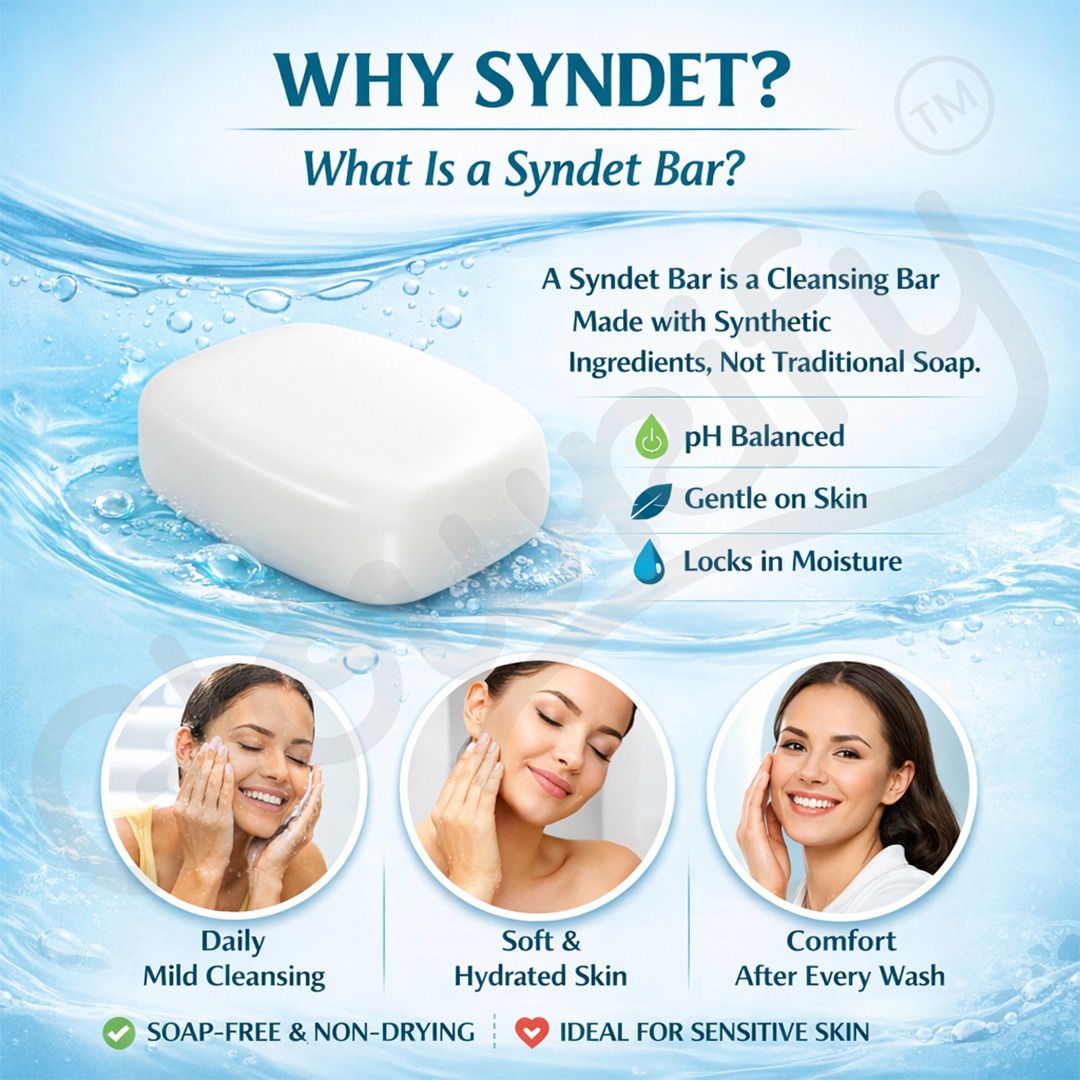 A syndet bar is not traditional soap. It’s a skin-science cleanser designed to match your skin’s natural chemistry.